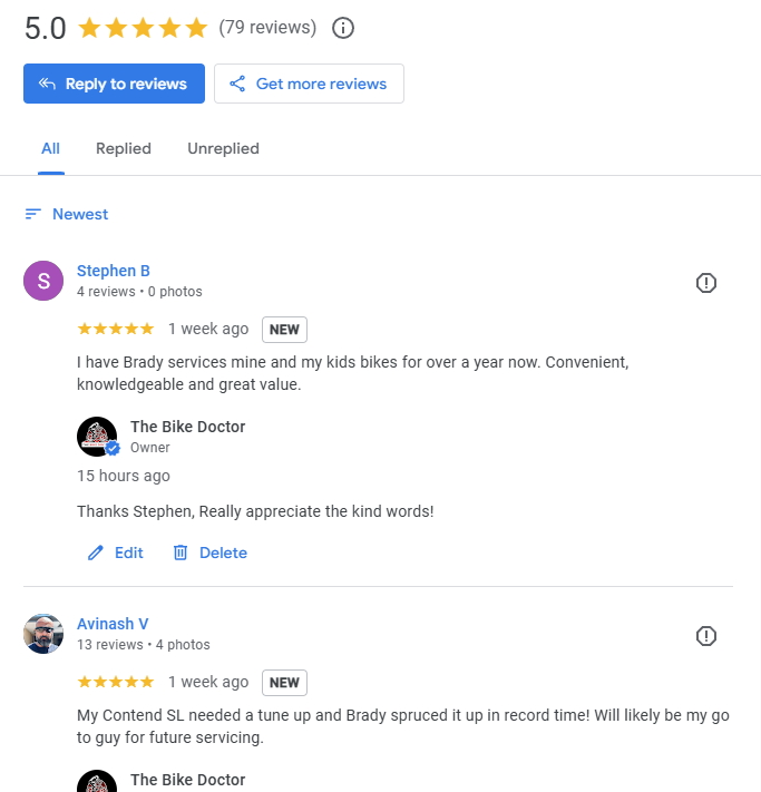 Hey, Brady was really easy to deal with and is very thorough and knowledgeable about bikes - so glad I was referred to The Bike Doctor for my service and will definitely be asking him to take care of regular servicing and repairs from this point - thanks!